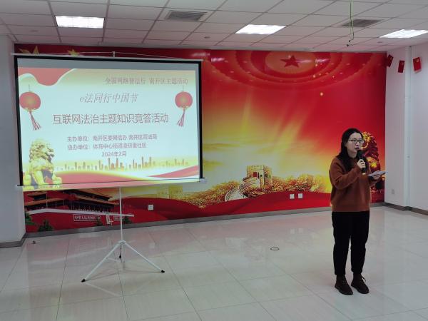 在南开区体育中心街道凌研里社区,互联网法治主题知识竞答活动热闹地举办着,志愿者围绕日常生活场景向广大社区居民群众普及宣传《宪法》《民法典》《网络安全法》《数据安全法》《个人信息保护法》《未成年人网络保护条例》等法律知识,营造共同参与网络法治工作的良好氛围。