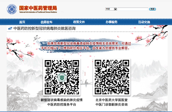 (截图来自国家中医药管理局官网。此次疫情期间国家中医药管理局网上开通在线咨询。)