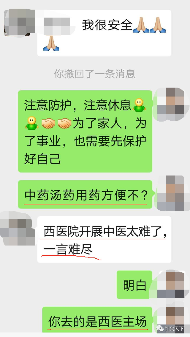 (截图摘自微信公众号“针会天下”,普通一线医务者之间的对话更能凸显现实。)
