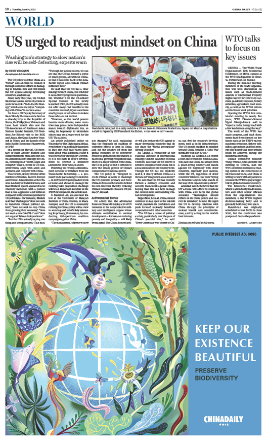 614日《中国日报》第10版刊发半版公益广告