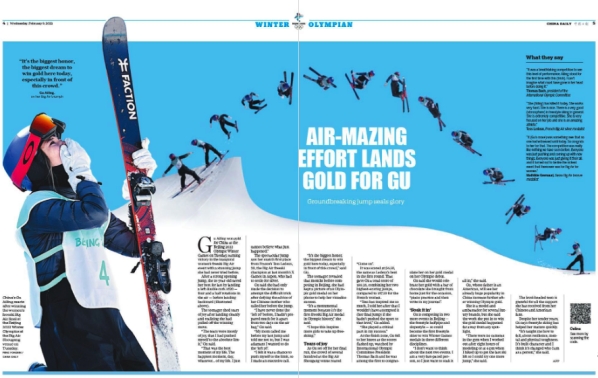 29日刊发通版图文报道《谷爱凌大跳台夺金》