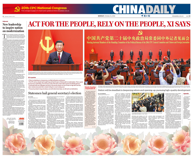1016日《中国日报》推出“向党的二十大献礼”八联版