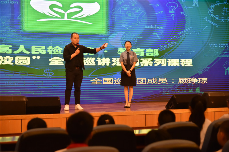 随后是一堂以“你身边的法律六面演艺”为主题的法治课。最高检、教育部法治进校园全国巡讲活动首讲讲师,来自一线的未检检察官顾琤琮与同学们你问我答,有爱互动。