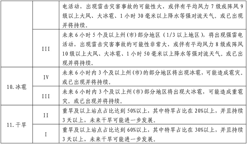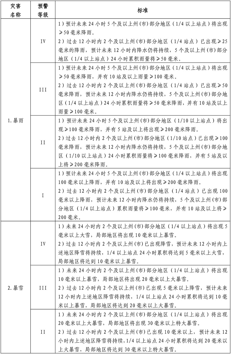 云南省气象灾害预警分级标准(省级)