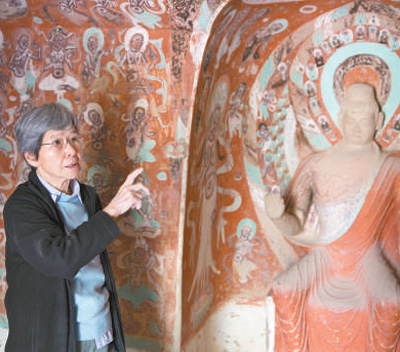 樊锦诗在敦煌莫高窟。