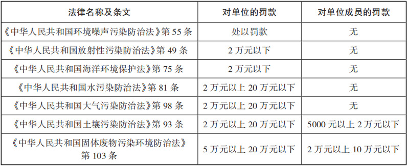 表1 当前我国污染防治法律关于拒绝、阻挠监督检查或者在接受监督检查时弄虚作假的罚款规定