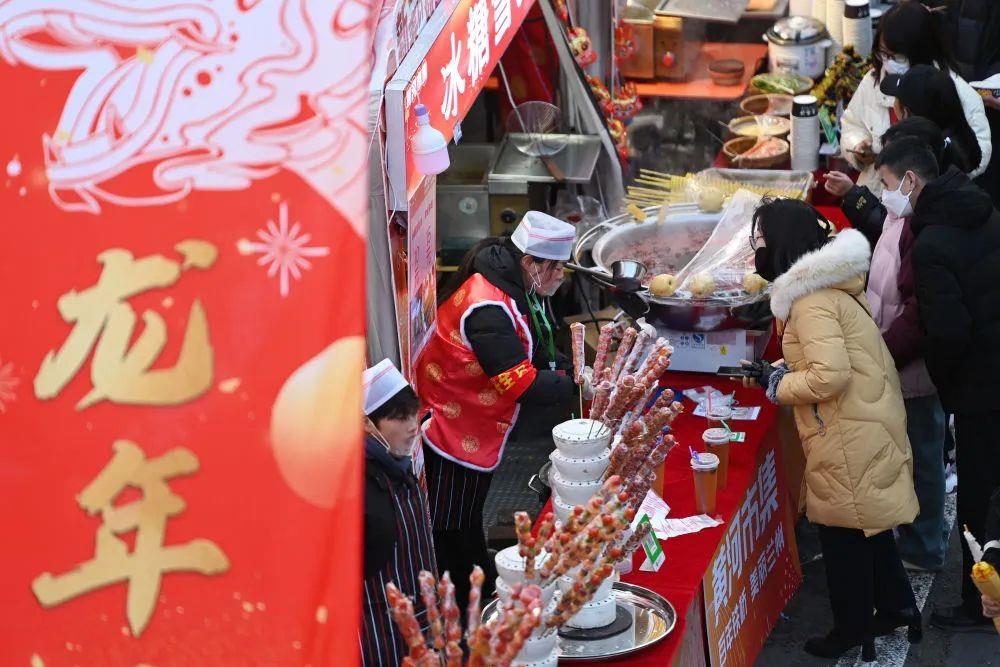 有拉洋片、杂技相声等传统技艺展示,也有卖炸灌肠、糖葫芦的小摊位……今年春节期间,北京全面恢复传统庙会,激活了许多老北京的独特春节记忆。