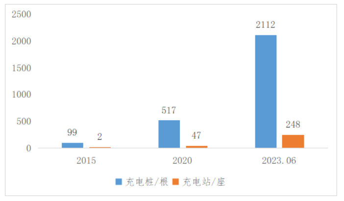 整体发展方面。截至2023年6月,我市累计投运公共充电站248座、充电桩2112根(公用桩1986根,专用桩126根,不含自用桩),其中,公共机构充电桩1096根,农村地区充电桩262根。普通高速公路服务区实现充电基础设施全覆盖,国省干线服务区、驿站充电基础设施覆盖率约57%,4A级及以上旅游景区充电基础设施覆盖率86%,充电网络初步建成。
