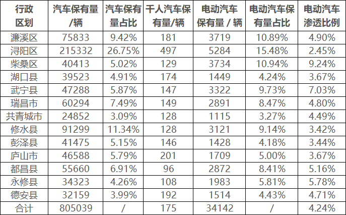 注:车辆数据来源于九江市公安局交通警察支队,常住人口数据采用第七次人口普查数据。