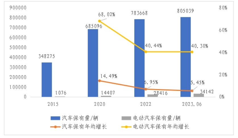 电动汽车保有量快速增长。在绿色低碳转型发展大背景下,我市不断加强对电动汽车发展的政策引导,消费者购买、使用电动汽车信心持续增强,全市电动汽车保有量大幅提升。截至2023年6月底,全市电动汽车保有量超3.41万辆,“十四五”以来年均增速达40%。其中,电动公交车1084辆,巡游出租车241辆,网约出租车775辆,私家车28406辆。