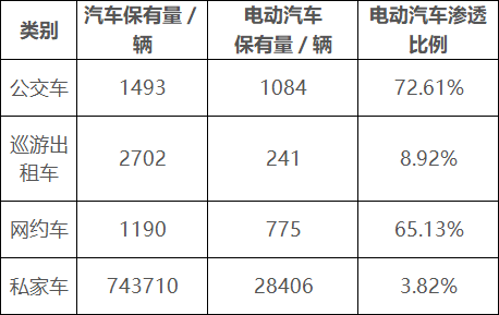从区域分布看,中心城区电动汽车保有量占比最高,达到37.34%;其次是武宁县,为9.73%;最低为共青城市,仅为3.09%。从车辆类别看,全市公交车、网约车电动汽车渗透比例较高,私家车、出租车电动化比例相对较低。
