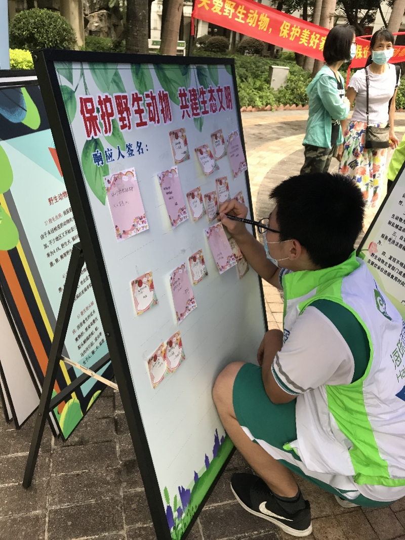 志愿者在保护野生动物响应人征集板上签字。 受访者供图