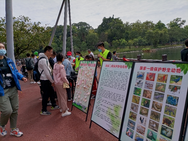 活动通过展出野生动物科普知识宣传的展板、发放保护野生动物倡议书、宣传单和小册子、开展知识问答、科普讲解等,向社区居民和市民游客广泛宣讲《野生动物保护法》、《陆生野生动物实施条例》、《广东省野生动物保护管理条例》等野生动物保护法律法规及科普知识的宣传教育,野生动物保护的法律法规,清晰民众对野生动物的分类,加强民众保护动物资源的意识。