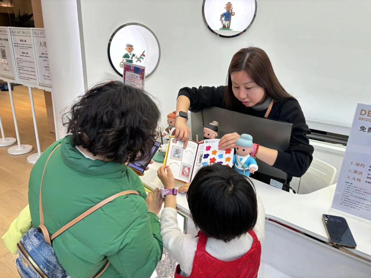 “请问有没有亲子票?”“柜台上这些文创是展示还是出售的呢?”2月10日大年初一,在南京市德基艺术博物馆的服务台,前来观展的游客问题接二连三,值班工作人员孙靓婕耐心接待,她专业的回答和亲和的态度让繁忙的现场变得有条不紊。