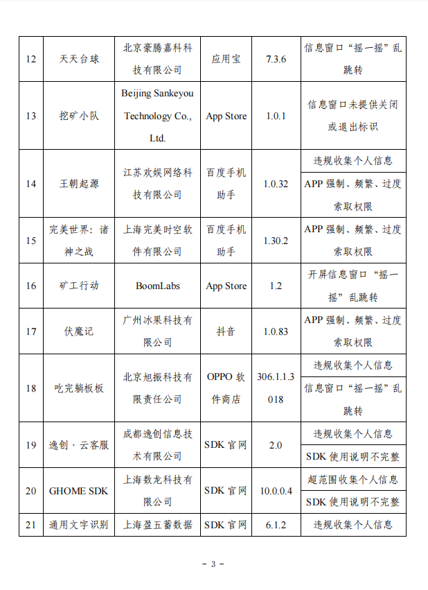 附件:工业和信息化部通报存在问题的APP(SDK)名单