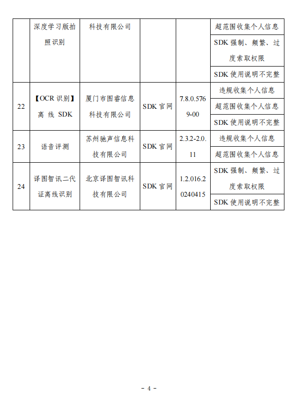 上述APP及SDK应按有关规定进行整改,整改落实不到位的,我部将依法依规组织开展相关处置工作。