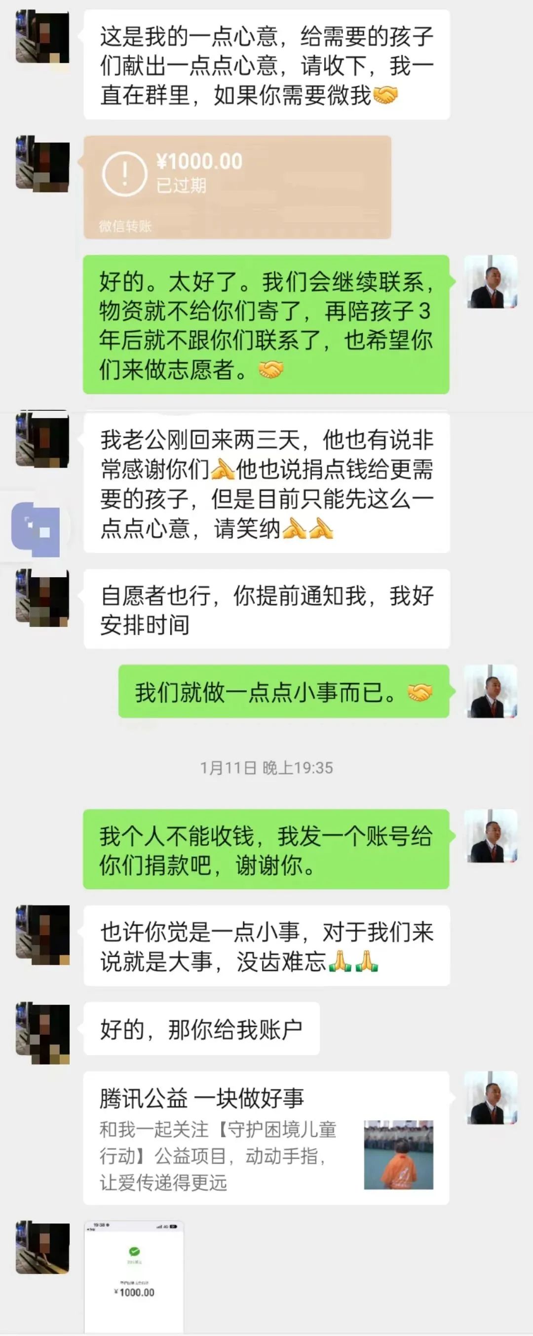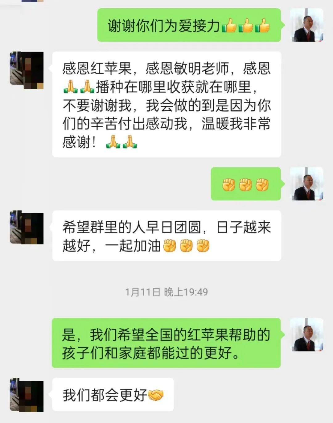 她随即给我发了一个1000元的红包,我说,我个人不能收,你愿意就捐到我们公开的募捐账号,谢谢你。这份心意对大部分家庭来说微不足道,但却凝聚了她对红苹果公益的深深感激和对未来的美好期许。