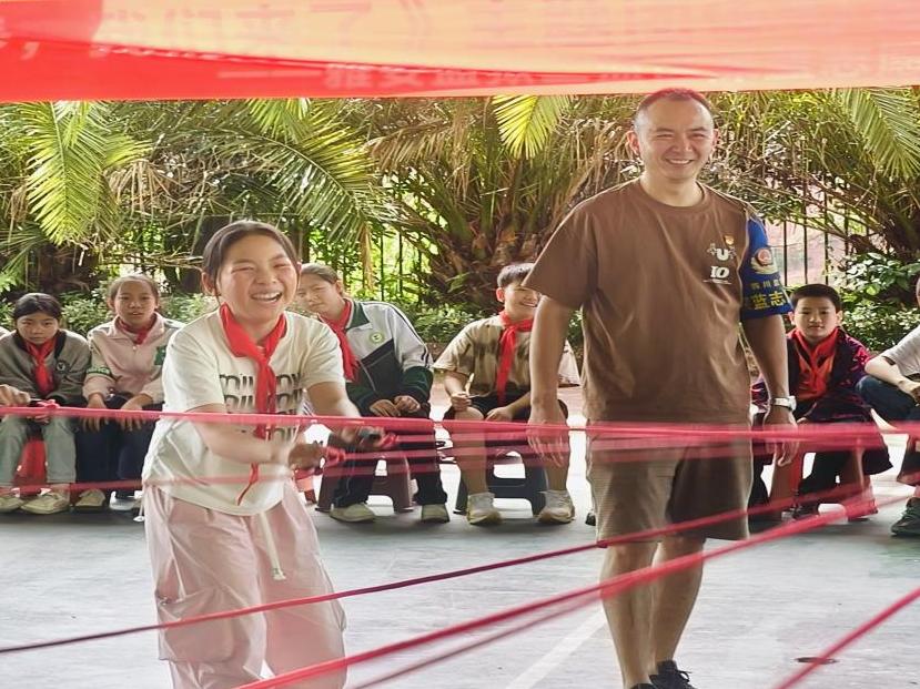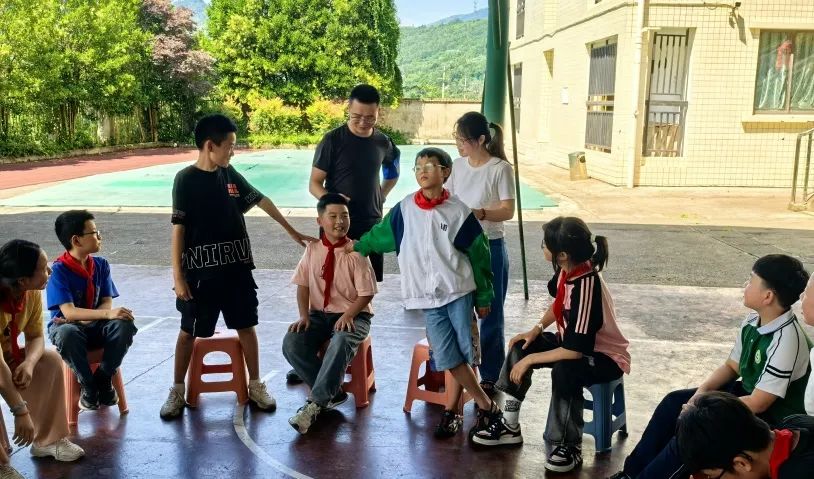 在心理团辅活动中,志愿者以富有趣味性的团体游戏为载体,寓教于乐,与学生们建立起信任和沟通的桥梁。同心鼓游戏中,学生们一球、一鼓、一绳,神情专注,“这边!这边!”“保持!保持!稳住!”“右边近一点!”在欢呼与呐喊声中,紧张地移动着步伐,既释放儿童天性又培育积极向上的健康心态,提升团队凝聚力和团结协作力。