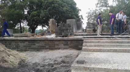 湖南省桃花源古建筑群是国务院公布的第六批全国重点文物保护单位。2016年12月,常德市文物局接到群众举报,反映桃花源古建筑群保护范围和建设控制地带内有擅自施工行为。经执法人员现场核查,举报属实。常德市文化旅游投资开发集团有限公司未经文物部门许可,擅自在该文保单位两线范围内违法建设。该行为涉嫌违反《中华人民共和国文物保护法》第十七条的有关规定,湖南省常德市文物局下达停止侵害通知书,依法启动执法程序。