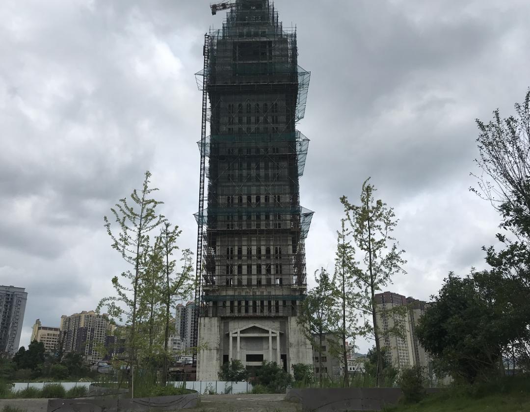 17日,记者来到这座钟楼前。钟楼位于县中心附近,已建造14层。有媒体称,该钟楼预估造价3000万。钟楼上布满了脚手架,塔吊依然架在楼顶,但并无人员施工。不过,在钟楼附近,传来叮叮当当的施工声。一位工作人员告诉记者,这里正在建设广场。