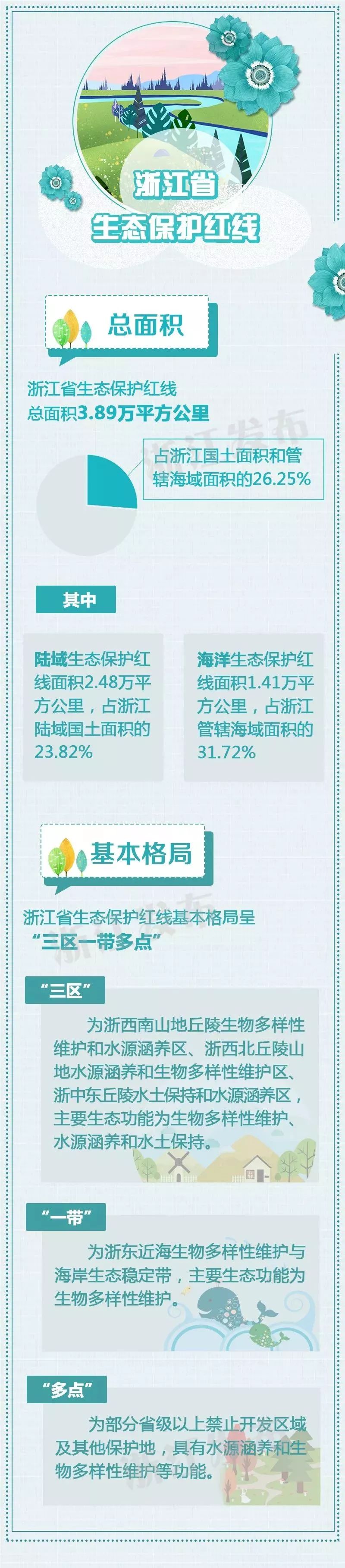 近日,省政府发布《浙江省生态保护红线划定方案》(以下简称《方案》),要求各地、各部门将生态保护红线作为综合决策的重要依据和各级各类规划编制的重要基础,实现一条红线管控重要生态空间,确保生态功能不降低、面积不减少、性质不改变,全面保护浙江生态环境,切实维护浙江生态安全。