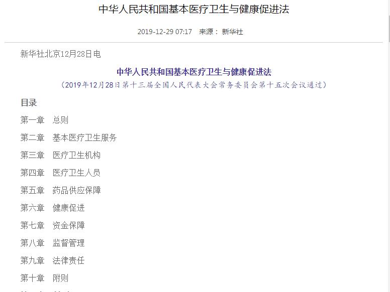 《基本医疗卫生与健康促进法》