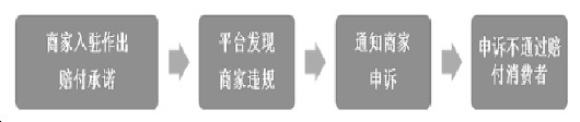 这种制度具体体现为:商家在线签署协议入驻平台,承诺遵守各项平台规则,并向消费者作出“假一赔十”、“如实描述”、“诚信发货”等承诺,同时授权平台在发生违规行为时可以直接从商家所有的资金中扣划相应款项赔付消费者。
