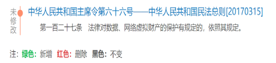 《民法典》第127条是关于数据、网络虚拟财产保护的引致性规定,内容虽然简单,但意义重大,弥补了我国法律在虚拟财产保护问题上的空白,明确了数据、网络虚拟财产的财产属性,迈出了法律全面保护虚拟财产的第一步。该条是对《民法总则》相关规定的保留,宣示了对数据和网络虚拟财产的保护,并为之后特别法的规定提供了法律依据。21世纪是互联网时代,以云计算、大数据、5G、人工智能、区块链等关键技术为代表的新科技已经且仍将对现代经济社会产生巨大的影响。在互联网时代,无论是哪一种新技术,都离不开数据的产生和保护,数据在新技术的形成、推广及运用过程中还会产生更多的数据。自20世纪人类进入互联网时代以来,人类社会对于数据的衡量和计算方式短时间内由K字节、M字节裂变为G字节、T字节。随着互联网技术的发展,网络游戏、社交平台等互联网电子服务也日益进入广大网民的生活,网络游戏、社交平台等电子服务在数据的基础上创造的各类网络虚拟财产在互联网服务中也纷纷涌现。与此同时,关于数据、网络虚拟财产的相关纠纷也大量产生。近年来,各类数据、互联网账户、网络游戏装备、Q币等网络财产的归属问题成为热议的焦点。随着中国网民人数的剧增,对数据和网络虚拟财产权属界定和法律构建亟待解决。以下小编结合相关条文和案例供读者更好地学习本条内容。