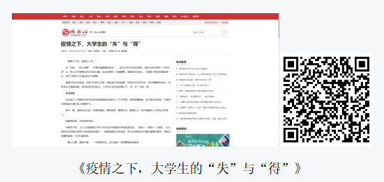 在西安市疫情防控的不同阶段,策划出品《科学防疫 复工复产:陕汽在行动》《疫情之下,大学生的“失”与“得”》《回车键》等全媒体产品,关注疫情下群众的生存现状,体现党刊的人民情怀。