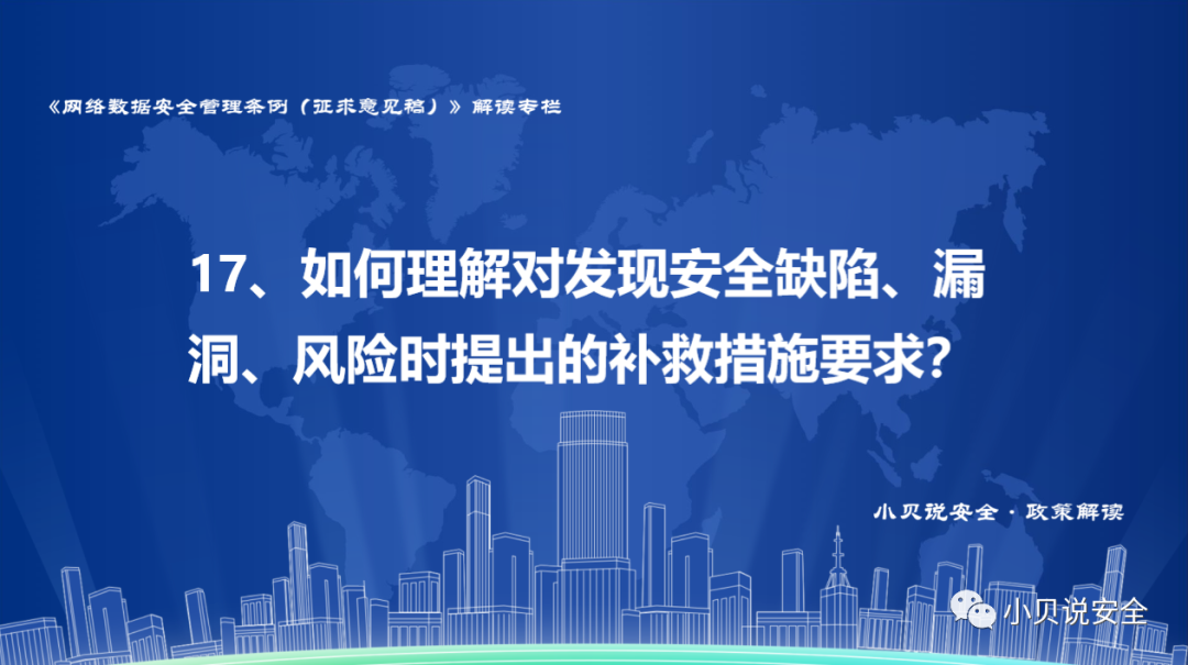 但就技术原理而言,“数据安全缺陷、漏洞”的提法不太容易被理解和接受,因为人们常说的是网络安全缺陷、漏洞。例如,由于操作系统或应用软件存在漏洞,导致攻击者侵入了系统,从而对数据造成了损害,这是典型的网络安全漏洞,怎么能称为数据安全漏洞呢?即使数据库、数据处理系统存在漏洞,这也是网络安全漏洞,“数据”怎么能有“缺陷”和“漏洞”呢?