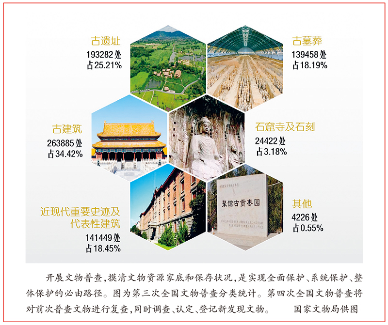 以普查绘就的全国文物资源地图为基础,文物工作将着力统筹加强各级各类文物资源保护管理,整体保护文物本体和改善周边环境,合理保存传统文化生态,协同推进历史文化名城名镇名村、工业遗产、农业遗产、水利遗产、科技遗产以及文化和自然双遗产、非物质文化遗产等保护,维护文物资源的历史真实性、风貌完整性、文化延续性,让文物和文化遗产所承载的城市文脉、农耕文明生生不息、薪火相传,让人民群众望得见山、看得见水、记得住乡愁。