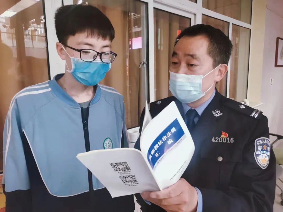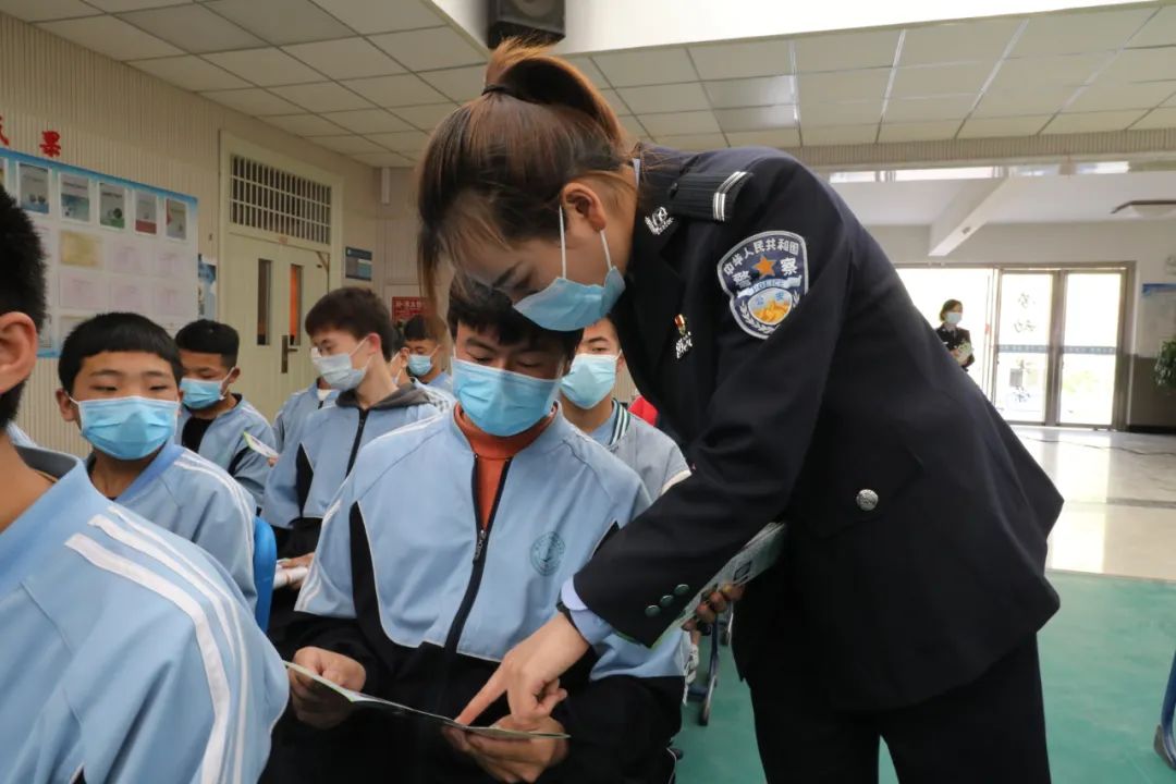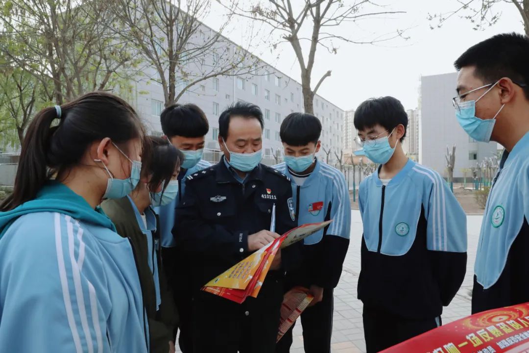 不远处,几名学生正围在哪里,是社区警务室的“老牛”警官正在给同学们宣传防范校园欺凌、防拐防骗、防毒品拒绝毒品等内容,“老牛”警官结合身边案例告诉大家:同学之间要相互包容、关心,冷静处理同学之间的“小摩擦”;要多学习法律法规,牢固树立法制观念,增强法制意识和自我保护的能力。荣亚飞警官还为学生们普及了反邪教、反恐防暴相关知识,力促法制安全教育知识入脑入心。