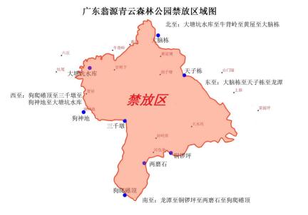 (三)龙仙镇青云山区域。青云森林公园:东至天子栋,南至狗爬礤顶,西至大塘坑水库,北至大脑栋。青云山省级自然保护区:东至雷公礤(连平交界),南至主人山,西至天子栋天水,北至茶坑尾。