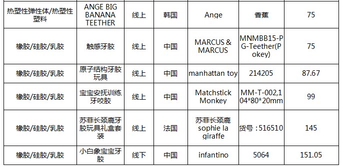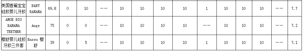 婴幼儿牙胶商品比较试验结果汇总表(详表)