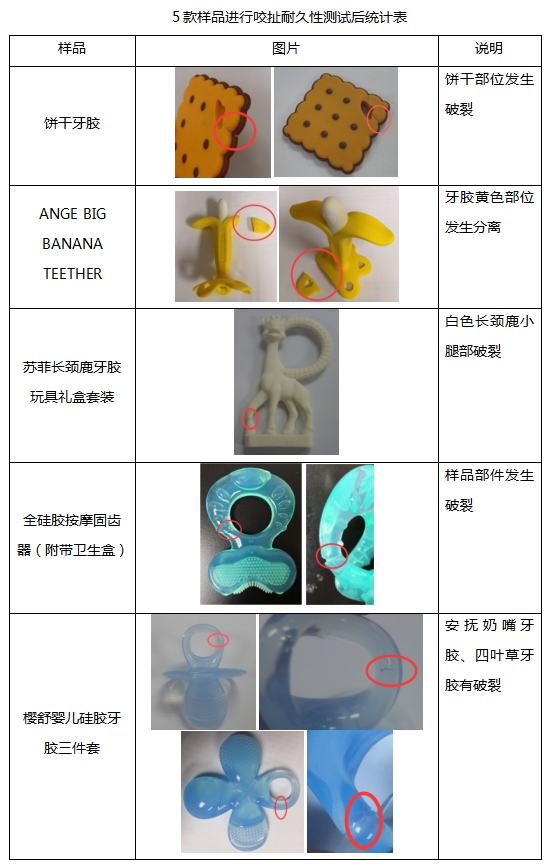依据《消法》赋予的法定职能,近期广州市消委会委托深圳市计量质量检测研究院开展婴幼儿牙胶商品比较试验,通过对不同品牌牙胶的质量对比,为消费者提供相应的商品信息及消费指导。试验结果仅对测试样品负责,不代表其同一批次或其他型号产品的质量状况。