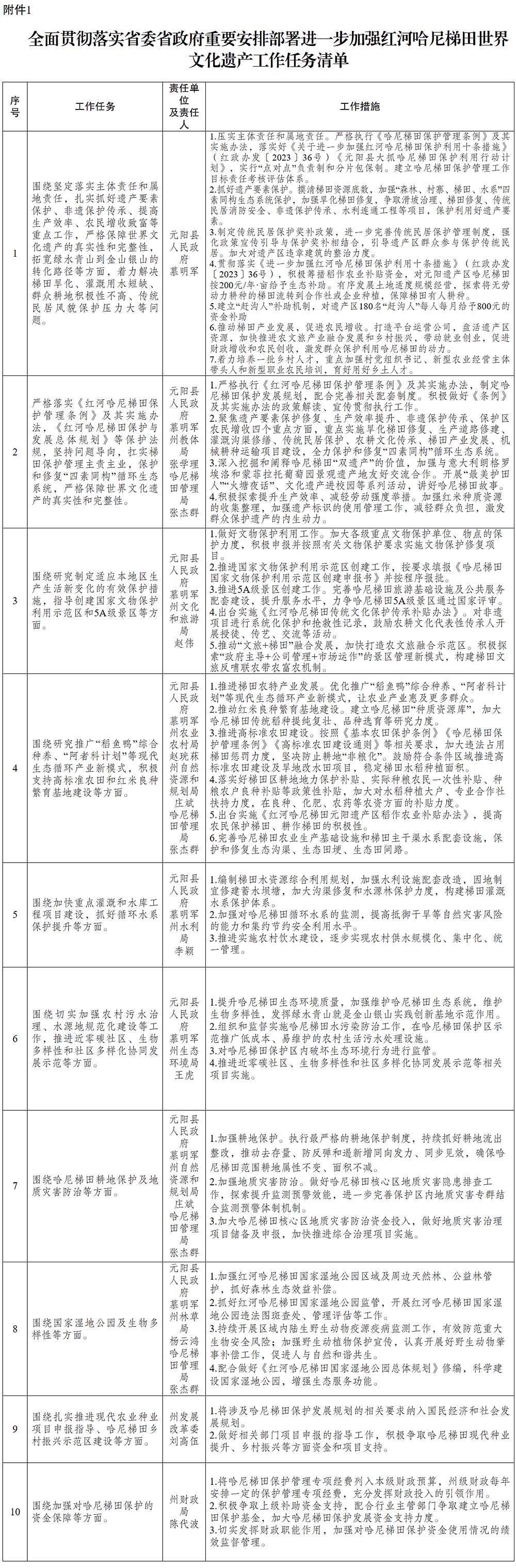 全面贯彻落实省委省政府重要安排部署进一步加强红河哈尼梯田世界文化遗产保护发展工作方案
