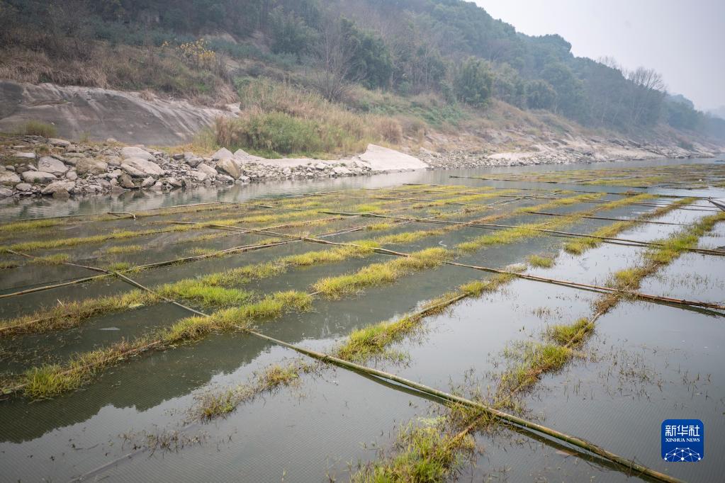 这是2023年2月7日在长江重庆江津段岸边拍摄的人工鱼巢。新华社记者 黄伟 摄
