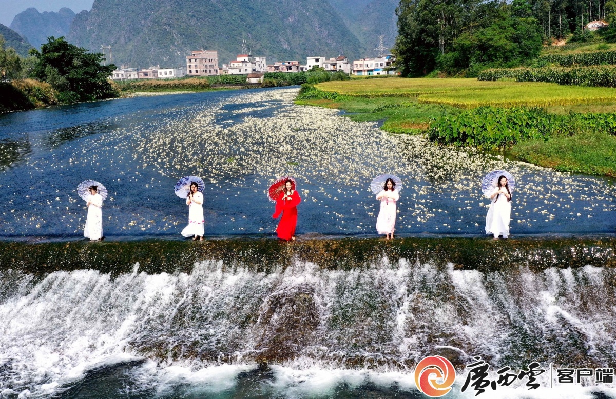 近年来,我区大力推进左右江流域山水林田湖草海湿地一体化保护修复和系统治理,持续筑牢祖国南方生态安全屏障。图为游客在都安瑶族自治县澄江河打卡拍照。高东风 摄
