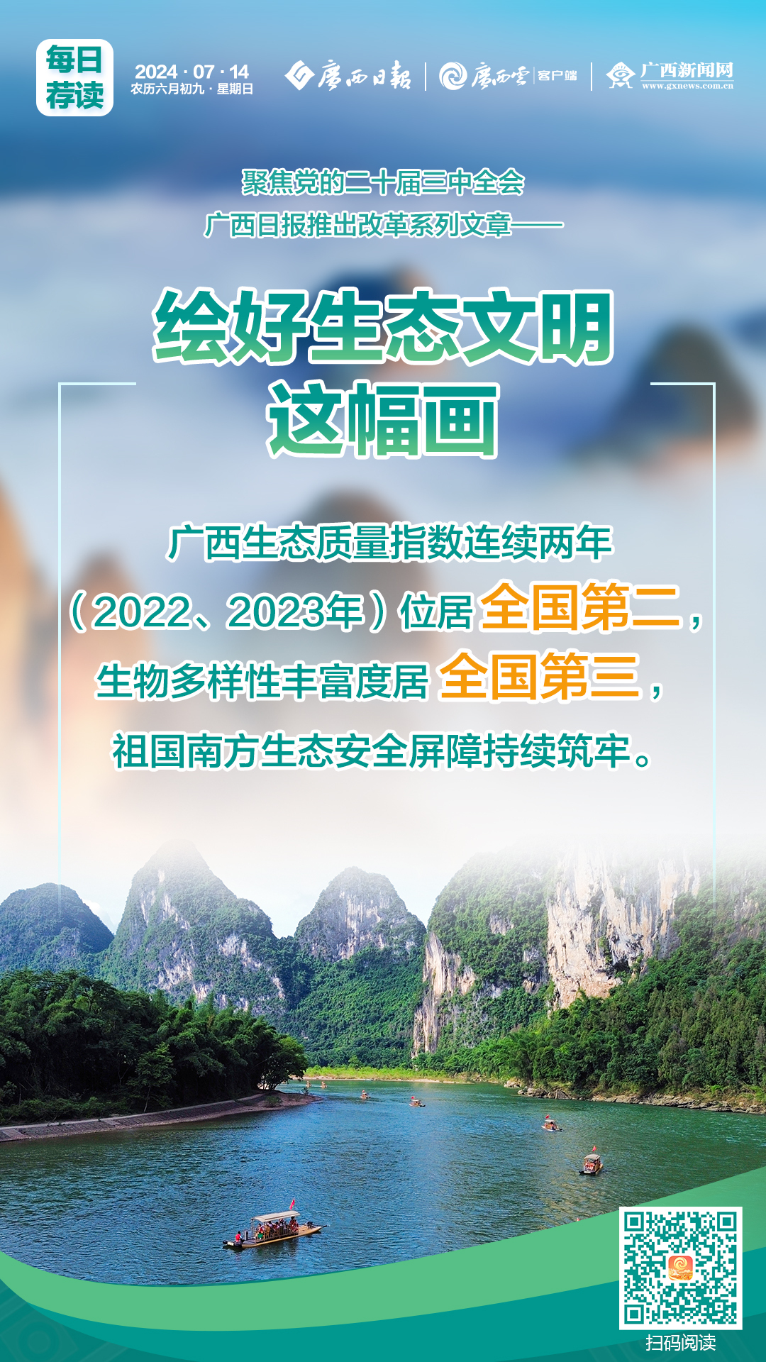 漓江是桂林山水之魂,也是观察广西深化生态文明体制改革的一个窗口。