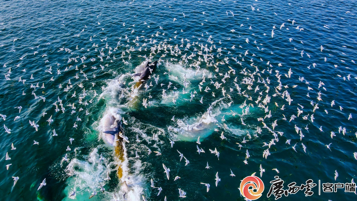 一群布氏鲸正在涠洲岛附近海域觅食。广西环保宣教中心供图