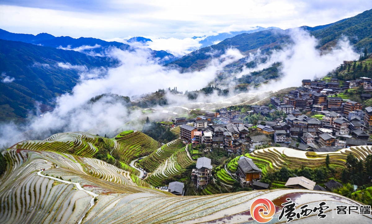 雨后初霁的龙胜各族自治县龙脊梯田云雾缥缈,美不胜收。潘志祥 摄
