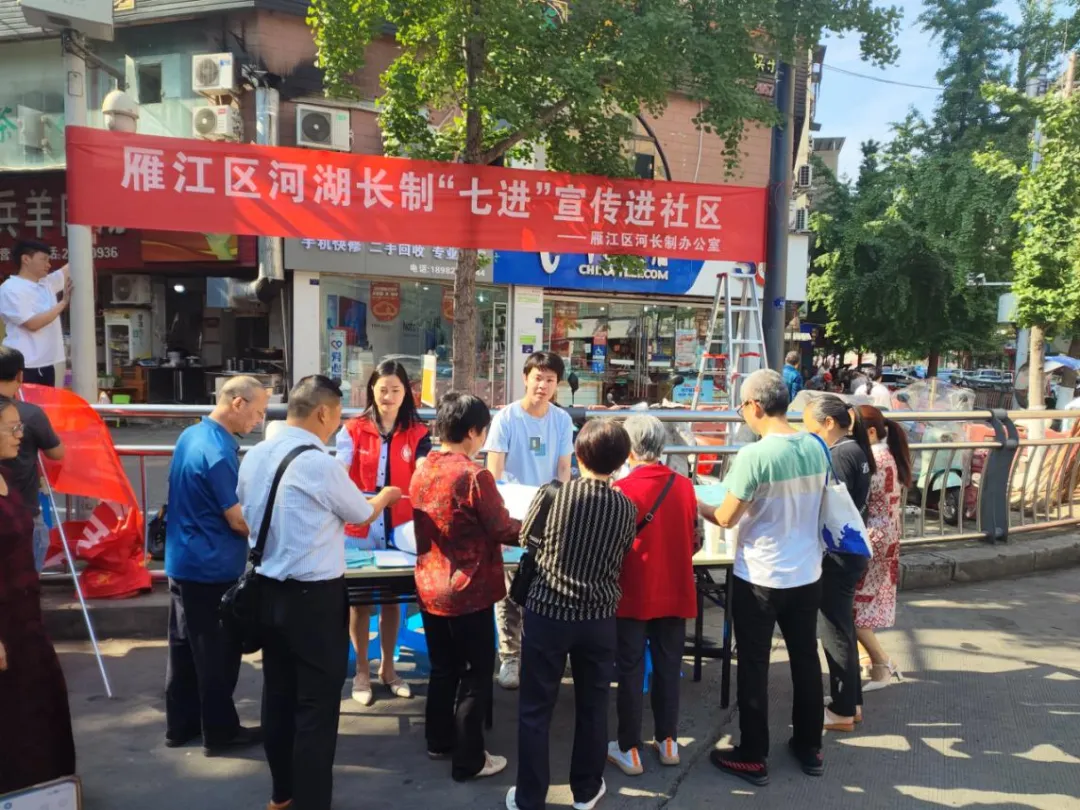 近日,资阳市雁江区河长制办公室前往黄泥井社区开展河湖长制“七进”进社区宣传活动。通过设置知识咨询台、悬挂宣传横幅、发放宣传手册等方式,为社区居民科普河湖长制相关知识,详细讲解河湖长制的工作内容,讲述保护河湖的重要意义,耐心解答居民疑问,引导居民们深刻认识保护水生态环境的重要性,切实增强居民参与保护水环境的责任感、使命感,营造共建、共享幸福河湖的良好社会氛围。