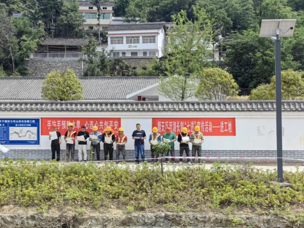 5月20日,广元市朝天区河长制办公室在中子镇转斗河山洪沟治理项目施工现场开展了防汛减灾宣讲暨河湖长制“七进”进企业宣传活动。
