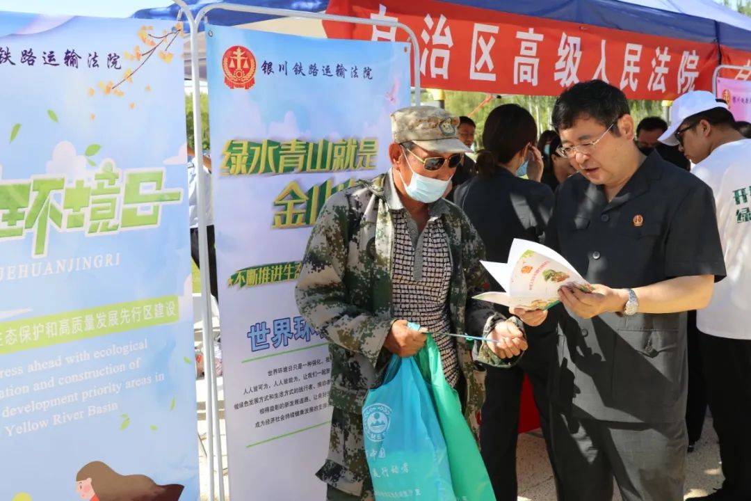 6月5日,在世界环境日当天,银川铁路运输法院组织干警前往银川市花卉博览园,以“加强生态环境司法保护,促进人与自然和谐共生”为主题,开展环境保护法治宣传活动。