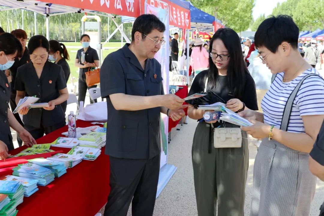 在活动现场,宣传干警通过设置咨询台、悬挂宣传横幅、发放《中华人民共和国环境保护法》《中华人民共和国水污染防治法》等宣传资料等方式,向过往群众宣传环境保护相关法律法规,倡导绿色文明,保护生态环境。