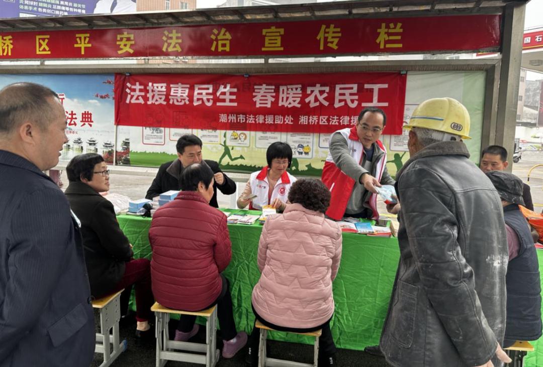 近日,潮州市法律援助处联合湘桥区法律援助处开展“法援惠民生 春暖农民工”宣传活动,重点宣传涉及农村务工人员的法律法规以及解决劳动争议的途径和方式,就农民工提出的劳动合同、工伤事故赔偿、工资讨薪、劳动维权等法律法规问题进行了耐心细致地解答,同时发放法律援助“市域通办”便民联系卡,并就法律援助申请程序、范围、对象、条件、服务指南等知识进行宣传讲解。