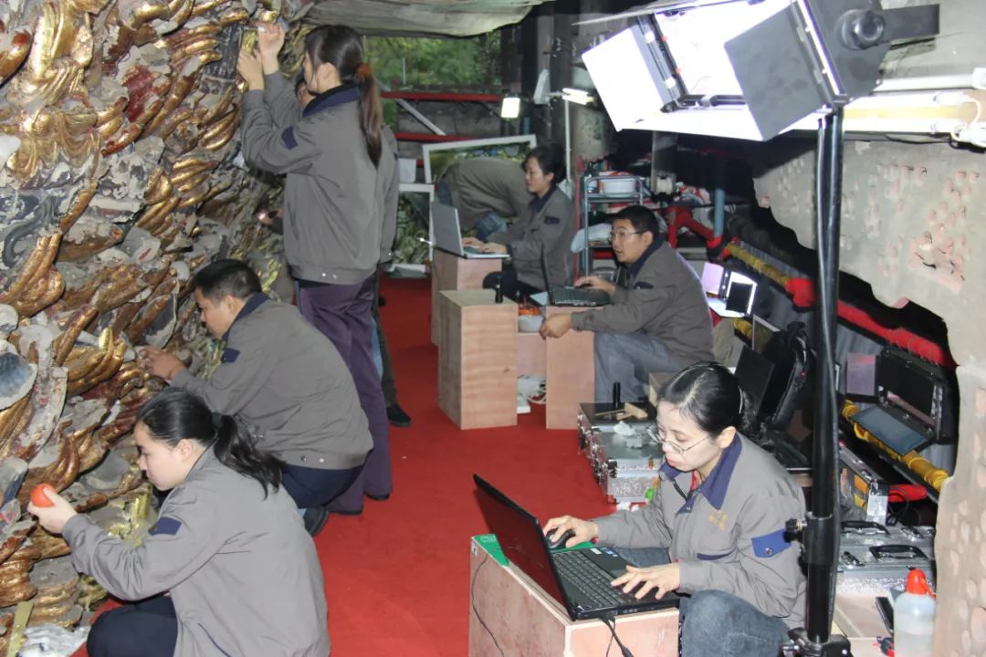 完善技防设施设备。建成并升级改造大足石刻安全技术防范系统,使宝顶山、北山、南山、石门山、石篆山石刻等5处列入世界文化遗产的石窟形成了人防、物防、技防为一体的全天候立体防护体系。在此基础上,将大足区内30多处重要石刻视频监控纳入了该系统。同时,还建立了宝顶山石刻景区微型消防站。通过安防、消防平台的搭建,将分散的文物保护单位进行整合管理,极大地提高了大足石刻文物安全技术防范水平。