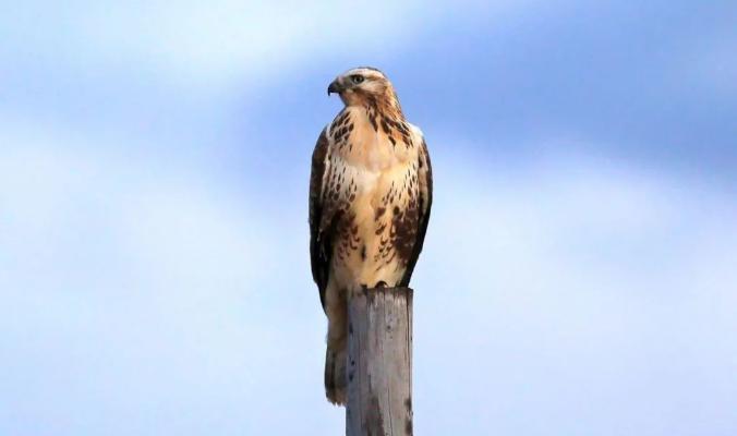 大鵟是国家二级保护动物,大鵟俗称豪豹、百鹭豹,是鹰形目鹰科鵟属大型猛禽。大鵟体长约70厘米的大型猛禽;具淡色型、暗色型和中间型等几种色型;上体通常呈暗褐色;下体呈白色至棕黄色,具棕褐色纵纹;尾上偏白并常具横斑,腿深色,次级飞羽具深色条带;浅色型具深棕色的翼缘;虹膜黄或偏白;嘴蓝灰色,蜡膜黄绿色;脚黄色。