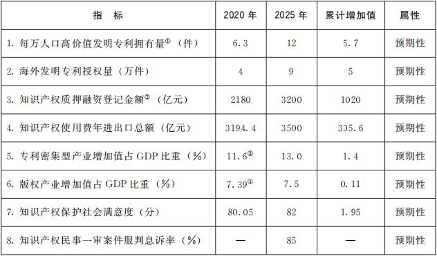 “十四五”时期知识产权发展主要指标