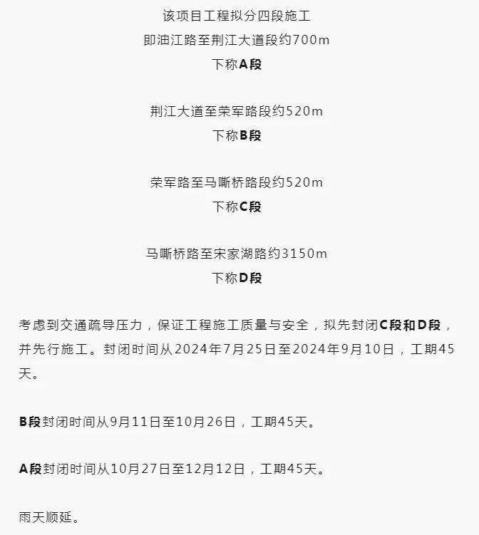 公安人注意!斗湖堤城区环城路路段即将依段次封闭施工四个月。
